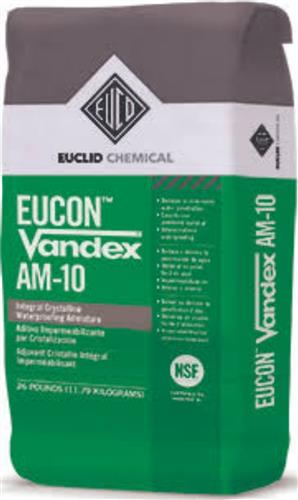 Es un aditivo integral cristalino en polvo. Se ha formulado específicamente para interaccionar con estructuras de poros capilares del hormigón y proporcionar un sistema de impermeabilización que forma parte permanente de la matriz de hormigón. VANDEX AM 10 se puede utilizar en aplicaciones por encima y por debajo del nivel del suelo. Las sustancias químicas activas, mezcladas con la cal y la humedad existentes en los poros capilares, forman complejos cristalinos insolubles. Estos cristales bloquean los capilares y las pequeñas fisuras de contracción en el hormigón y evitan de este modo la entrada posterior de agua (incluso bajo presión). No obstante, el hormigón todavía permitirá el paso de vapor de agua a través de la estructura; es decir, aún podrá «respirar».