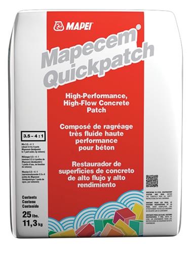 Mapecem Quickpatch es un material de cemento, de alto rendimiento y fraguado rápido, que se usa para reparar superficies de concreto