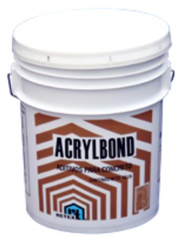 Es un adhesivo emulsionado a base de resina acrílica, para mejorar la capacidad adherente de mezclas base cemento al substrato en que se apliquen. ACRYLBOND es ampliamente recomendado para integrarse en la mezcla de morteros y concretos, ya que por su formulación de alta concentración de sólidos, no solamente contribuirá a mejorar la adherencia de revestimientos y recubrimientos a la superficie, sino que además mejorará sus propiedades mecánicas, reducirá la permeabilidad y contribuirá a la mejor retención de humedad de la mezcla. Adicionalmente, gracias a su presentación de viscosidad media, ACRYLBOND facilita su dispersión dentro de la mezcla, mejorando no solamente su adhesividad, sino también su manejabilidad, y actuando además como retenedor de humedad de la mezcla para optimizar sus características mecánicas.