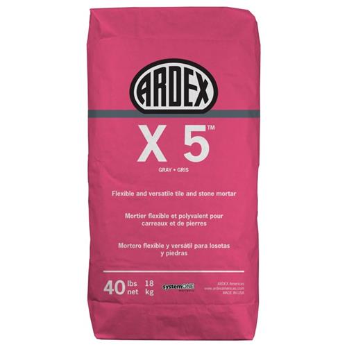 ARDEX X 5 ™ es un mortero para losetas y piedras de gran formato altamente versátil y modificado con polímeros para colocar losetas de porcelana, gres, cerámica y la mayoría de las piedras naturales* sobre superficies interiores comunes, incluyendo madera contrachapada de grado exterior, así como superficies exteriores de concreto y mampostería.