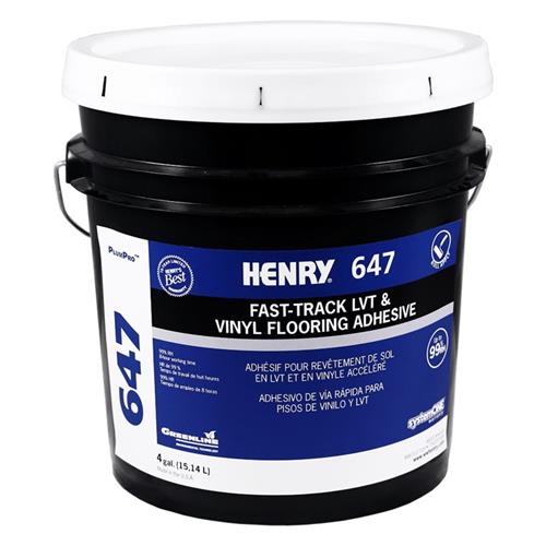 Cuando las guías específicas de instalación del fabricante permiten un adhesivo seco al tacto, sensible a la presión y completamente adherido, use el rodillo y aplique HENRY 647 para instalar los siguientes tipos de pisos: